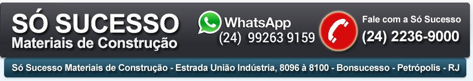 SÓ SUCESSO MATERIAIS DE CONSTRUÇÃO Estrada União Indústria, 8096 à 8100 - Bonsucesso - Petrópolis - RJ Telefone: (24) 2236-9000 e-mail : contato@sosucessoonline.com.br *campos obrigatórios para identificarmos você. Obrigado!